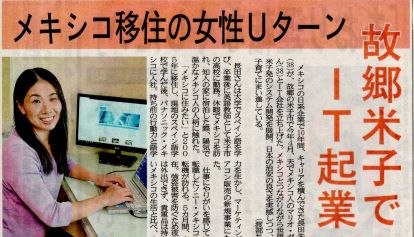 メキシコ移住からUターン、女性IT起業ということで、記者の方に取材して頂きました。Uターンの理由や今後の活動の思いなどをお伝えしました。